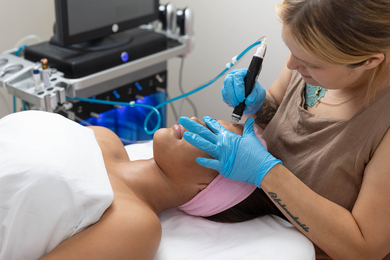 our Signature HydraFacial, a premium, multi-step facial designed to deeply refresh and revitalize your skin. Using the cutting-edge HydraFacial machine, this treatment incorporates four patented steps: cleanse, exfoliate, extract, and protect, ensuring a flawless, hydrated complexion.